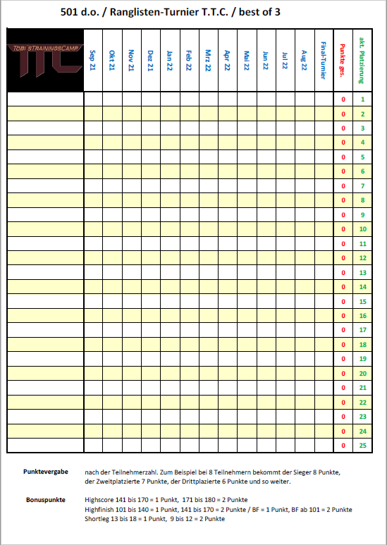 T.T.C. Ranglistenturnier 2021/2022 startet am 11.09.2021